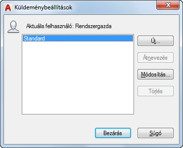 Átnevezi az éppen kijelölt küldeménybeállítást.