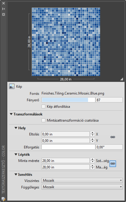 Kép vagy procedurális alapú textúrák tulajdonságait szerkeszti.