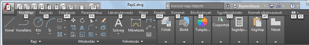 A billentyűtippek kiválasztásakor az adott eszközhöz tartozó több billentyűtipp is megjelenik. A fenti példában az Alt + H billentyűkombináció lenyomásával a Kezdőlap panel megnyílása mellett további billentyűtippek jelennek meg.