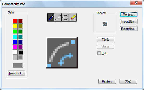 A színminták segítségével a szokásos 16 szín valamelyikét lehet az aktuális színné tenni.