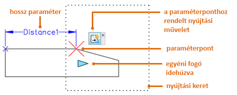 Általánosan megfogalmazva, először egy paramétert hoz létre, majd egy műveletet társít a paraméterhez. A paraméter egy paraméterpontként jelenik meg, és egy vagy több egyéni fogó tartozik hozzá, amelyek a blokk rajzba történő beszúrását és kiválasztását követően jelennek meg.