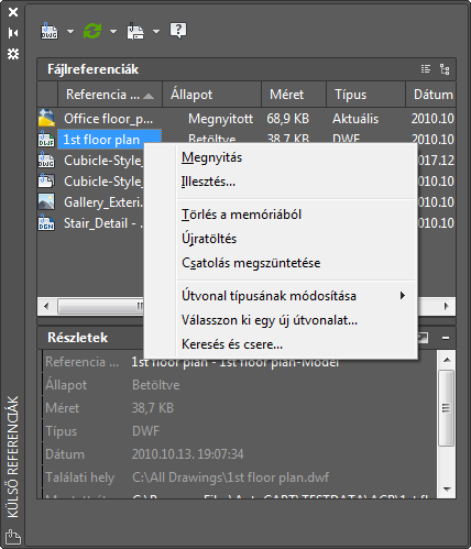 Ha a módosításra kijelölt referencia külső referenciákkal vagy blokkdefiníciókkal rendelkezik, a referencia és annak beágyazott referenciái a Referencia szerkesztése párbeszédpanelen választhatók ki. A beágyazott referenciák csak akkor jelennek meg, ha a kijelölésre kiválasztott objektum egy beágyazott referencia része. Egyszerre csak egy referencia választható ki módosításra. OLE-objektumokat tartalmazó referencia módosításakor az OLE-objektumok megjelennek, de szerkesztés céljából nem választhatók ki.