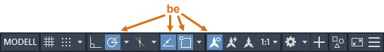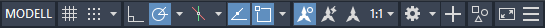 Az állapotsor gyors hozzáférést biztosít a leggyakrabban használt rajzi segédeszközökhöz és eszközökhöz. Ez itt az alapértelmezett állapotsor.
