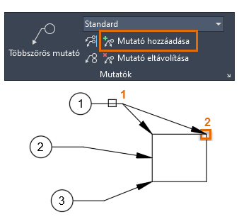 Megjegyzés: A TMUTATÓ parancs lehetővé teszi a parancs beviteli sorrendjének megváltoztatását – eldöntheti, hogy a nyílfejet, a mutatót vagy a tartalmat kívánja-e először megadni.