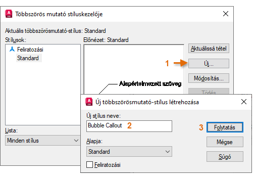 Tipp: Ha minden új rajzban szeretne további többszörösmutató-stílusokat elérhetővé tenni, hozza őket létre rajzsablonfájlként (DWT).