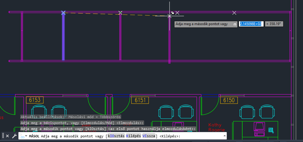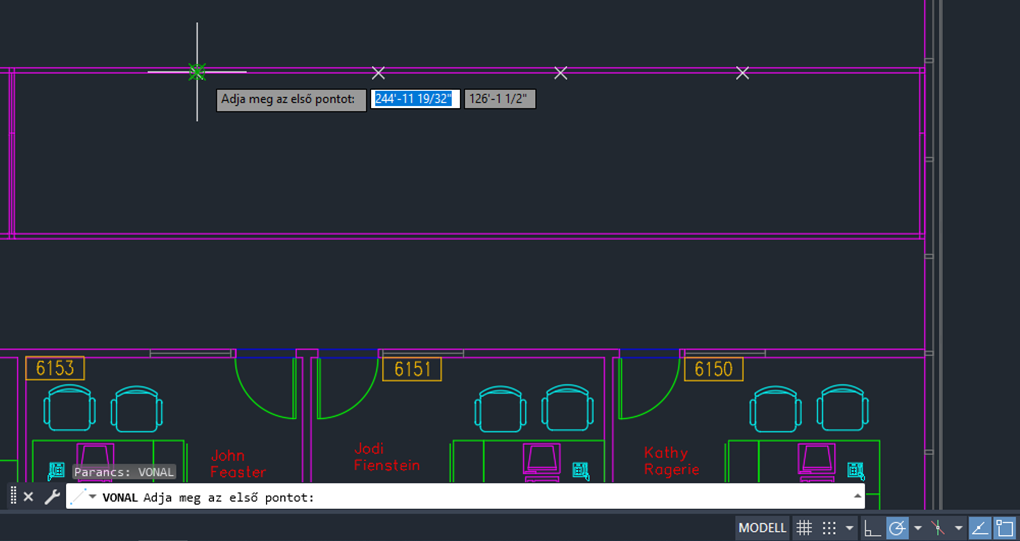 Most már könnyen megállapíthatjuk, hogy hol kell lenniük a falaknak. A VONAL paranccsal hozzon létre egy falat, majd a MÁSOL paranccsal készítsen másolatot a falról, amelyen az összes pont megtalálható.