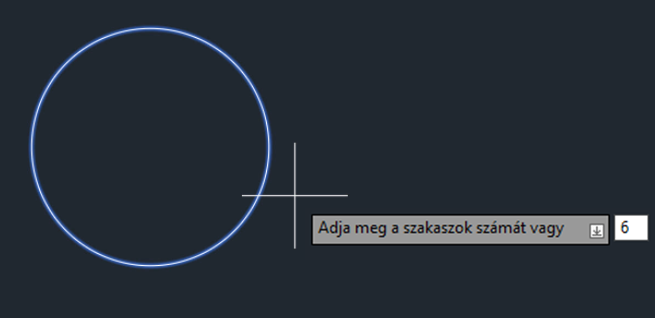 Használjuk újra a FELOSZT parancsot, de most egy kört osszunk fel. Tegyük fel, hogy egy kört hat egyenlő „szeletre” szeretnénk osztani, ahogy az ábrán látható.