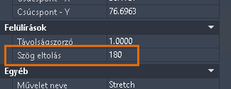 A Tulajdonságok palettán állítsa a Szög eltolást 180 értékre. Emiatt a kiválasztott objektumok a hossz fogó húzásakor az ellentétes irányba nyúlnak.