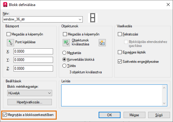 Ha a blokk nincs megnyitva a Blokkszerkesztőben, kattintson duplán a korábban létrehozott nyújtható ablakra, majd kattintson az OK gombra a blokk szerkesztéséhez.