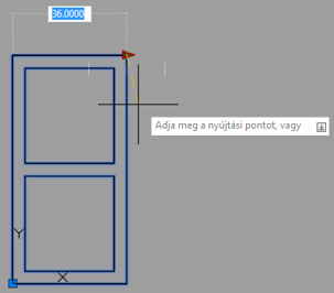 Egy üres rajzon rajzoljon egy olyan 36x72-es téglalapot, amely az ablakot ábrázolja. Rajzolja meg a belső téglalapokat a megadott módon. Az ablak bal alsó sarokpontját helyezze a 0,0 koordinátára. Ez a hely lesz a blokk alap beillesztési pontja.