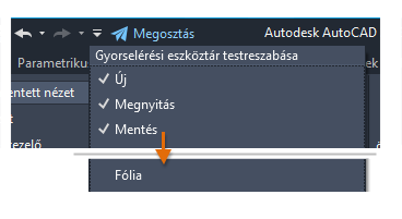 Amikor a szalag kis méretű, a Fóliák panelen kényelmetlenebb az eszközök elérése. Ehelyett a Gyorselérési eszköztárhoz adhatja a Fólia legördülő listát.