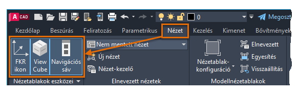 A nézetablak-vezérlők elsődlegesen a 3D modellezésre szolgálnak. Ha nem használja, a 2D rajzok zsúfoltságának csökkentése érdekében elrejtheti ezeket a vezérlőelemeket.