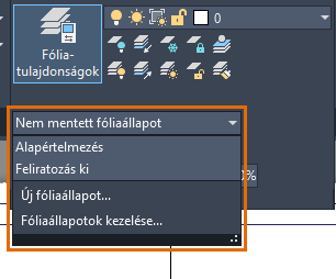 Amikor összetett rajzokon dolgozik, előfordulhat, hogy ki szeretne kapcsolni néhány fóliát, lefagyasztani néhány fóliát, illetve módosítani más fóliák tulajdonságait. Ha bármikor vissza kíván térni ehhez a fóliakészlethez és annak tulajdonságaihoz, a fóliaállapotok használata megkönnyíti ezt. A fóliaállapotok olyanok, mint a fóliaállapot létrehozásakor meglévő fóliák és fóliabeállítások pillanatképei. A fóliaállapot el lesz mentve a rajzhoz, és bármikor visszaállítható. Exportálhatja is a fóliaállapotot, illetve importálhatja másik rajzba. A fóliaállapotok egyéb felhasználása: