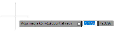 Parancs indításakor, ha a dinamikus adatbevitel engedélyezve van, az aktuális parancs fő promptja megismétlődik a szálkereszt közelében, számos adatbevitelt fogadó eszköztippel együtt. Ha például a KÖR parancsot futtatja, az AutoCAD koordinátaértéket kér a kör középpontjának meghatározásához.