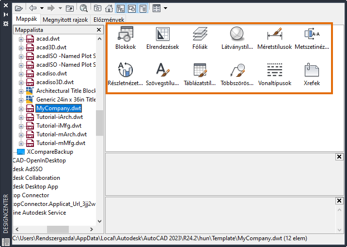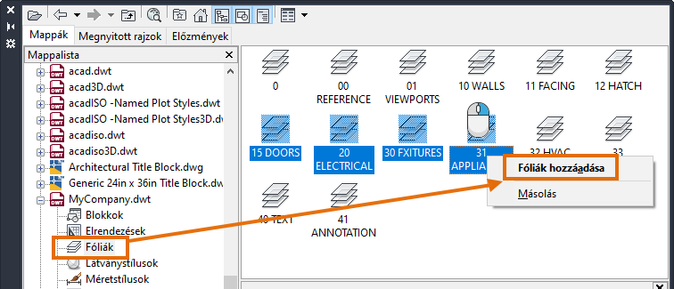 Ekkortól a sablon összes stílusa és fóliája elérhető lesz az aktuális rajzban. Az azonos névvel rendelkező meglévő stílusok és fóliák nem módosulnak.