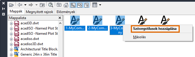 Jelölje ki az importálni kívánt stílusokat, kattintson a jobb gombbal, majd kattintson a Szövegstílus(ok) hozzáadása gombra.