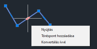 Mozgassa a mutatót az egyik szakasz felezőponti fogója fölé a fogó menüjének megtekintéséhez.