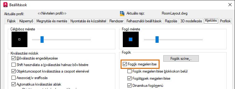 Fogókkal kapcsolatos tippek megjelenítését szabályozza abban az esetben, amikor az egérmutató olyan dinamikus blokk vagy egyéni objektum fogója fölött időzik, amely támogatja ilyen tippek használatát.