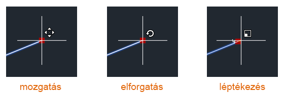 Megjegyzés: Az egérmutató figyelmeztető jelei jelzik, ha mozgatás, elforgatás vagy léptékezés fogómódban van, de a nyújtás és a tükrözés fogómódot nem.