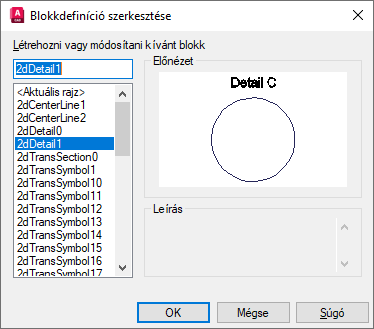 Kattintson duplán a Detail C (C részlet) szövegre vagy a szöveg melletti körre a Blokkdefiníció szerkesztése párbeszédpanel megjelenítéséhez.