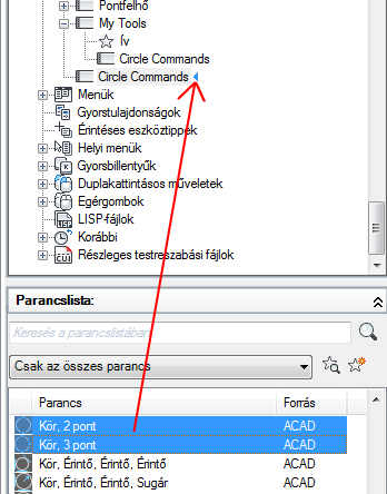 A Parancslista területről húzza a hozzáadni kívánt parancsot a <fájlnév> testreszabási beállításai területen lévő eszköztár-leporellóhoz.