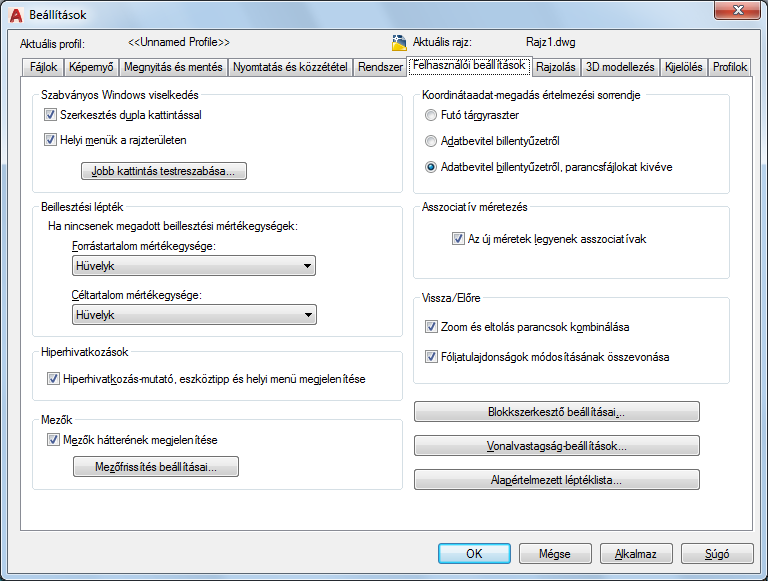 Vezérli a blokkok és rajzok rajzba illesztésének alapértelmezett léptékét.