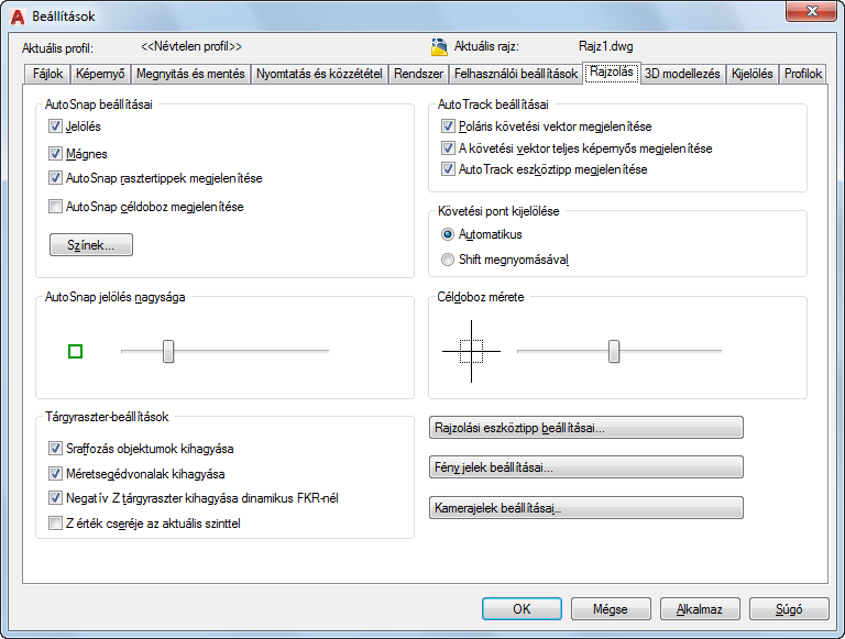 Néhány fent ismertetett beállítás nem érhető el az AutoCAD LT programban.