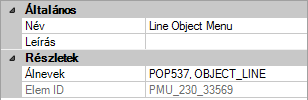 Ha a kiválasztott objektumhoz vagy az azonos típusú objektumokhoz kapcsolódó menüelemeket szeretné beilleszteni, akkor adja meg az OBJECT_objektumnév vagy OBJECTS_objektumnév álnevet. Az objektumnév szövegének érvényes objektumnévnek kell lennie, és egyeznie kell annak az objektumnak a DXF™ kód 0 értékével, amelyhez a helyi menüt meg szeretné jeleníteni. Ha például azt szeretné, hogy a helyi menü elemei akkor jelenjenek meg, amikor egy VONAL objektum van kiválasztva, használja az OBJECT_VONAL álnevet.