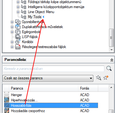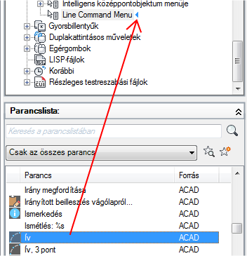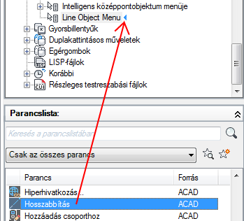 Ha az aktív parancshoz kapcsolódó menüelemeket szeretné beilleszteni egy helyi menübe, akkor adja meg a COMMAND_parancsnév álnevet. A parancsnév szövege bármilyen érvényes parancs neve lehet. Ha például azt szeretné, hogy a helyi menü elemei akkor jelenjenek meg, amikor a VONAL parancsot használja, adja meg a COMMAND_VONAL álnevet.