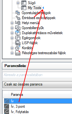 A Parancslista területről húzza a helyi menühöz hozzáadni kívánt parancsot az <fájlnév> testreszabási beállításai ablaktáblára.