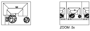 A program egy középpont, nagyítási érték vagy magasság megadásával állítja be a rajz látszólagos méretét. Ha a magasság értéke kisebb, az növeli a nagyítás mértékét. Ha az érték nagyobb, az csökkenti a nagyítást. Nem érhető el perspektivikus vetítésben.