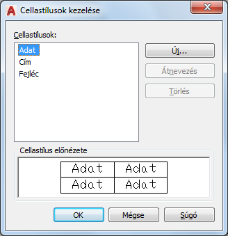A kiválasztott cellastílusnak új név adható. A Cím, a Fejléc és az Adatok cellastílus nem nevezhető át.