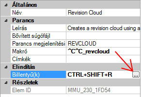 A Tulajdonságok ablaktáblán kattintson a Billentyű(k) mezőbe, majd kattintson a […] gombra a Billentyűparancsok párbeszédpanel megnyitásához.