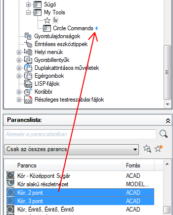 A Parancslista területről húzza az almenühöz hozzáadni kívánt parancsot a
