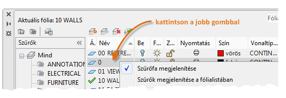 A kijelölt fóliát aktuális fóliának állítja be. Az új objektumok automatikusan az aktuális fólián jönnek létre. (CLAYER rendszerváltozó)