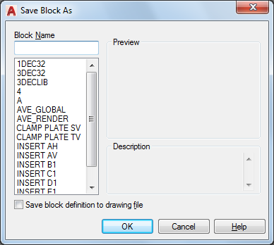 Rajzfájlként menti a blokkdefiníciót. Ha mér meglévő rajzfájlt választ ki, a mentett fájl felülíródik. Alapértelmezés szerint a megadott blokknév lesz a rajzfájl neve.