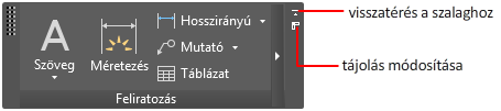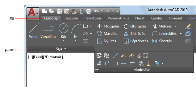 A szalagon kompakt palettán férhet hozzá minden olyan eszközhöz, amelyre egy rajz létrehozásához vagy módosításához szüksége lehet. Az alábbi helyzetekben helyezhető el: