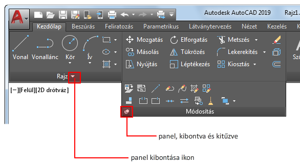 A paneleket a szalaglapról áthúzhatja a rajzterületre vagy egy másik képernyőre. A lebegő panel mindaddig nyitva marad, amíg vissza nem húzza azt a szalagra. A panel még akkor sem zárul be, ha esetleg másik szalaglapot aktivál.