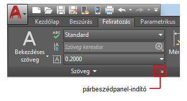 Egyes szalagpanelek hozzáférést biztosítanak a panelhez kapcsolódó párbeszédpanelhez. A kapcsolódó párbeszédpanel megjelenítéséhez kattintson a párbeszédpanel-indítóra, amelyet egy nyíl ikon jelöl (