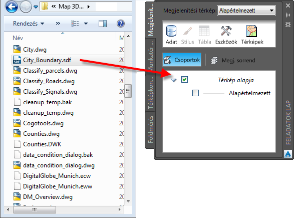 Fogja meg és vontassa a városhatárfájlt a Megjelenítéskezelőbe.