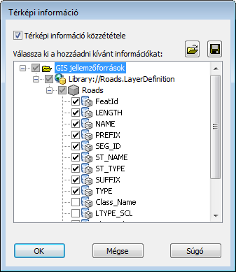 Adja meg a DWF közzétételi beállításokat, amelyek meghatározzák a térképpel együtt közzétenni kívánt attribútuminformációkat.