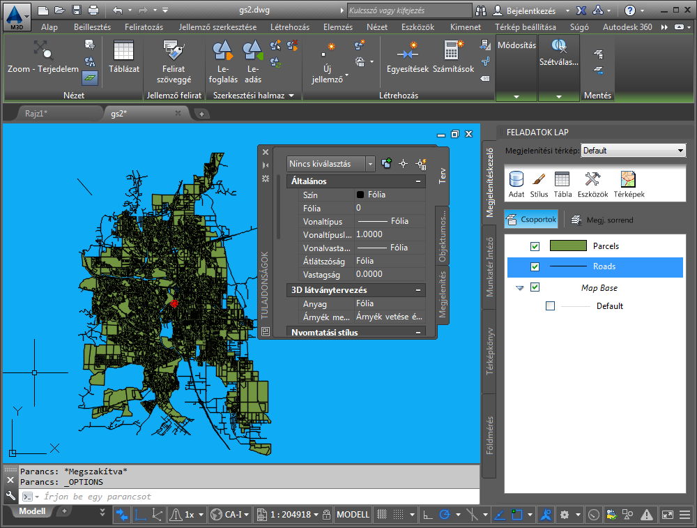 Az AutoCAD Map 3D toolset alkalmazásablak áttekintése