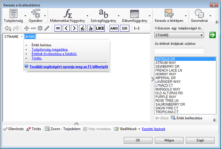 Amikor a zöld nyílra kattint, megtölti a tulajdonságokat tartalmazó listát. A választott érték lecseréli a kijelölt értéket.