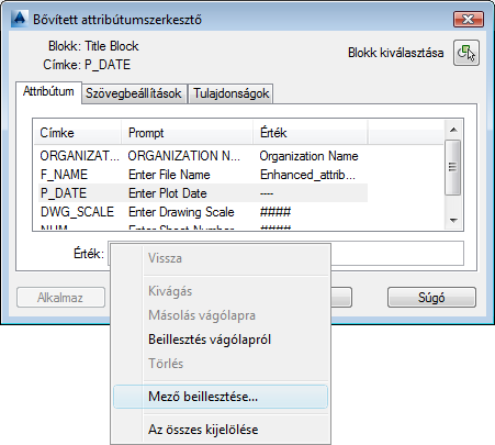 Kattintson a jobb gombbal az értékre egy mező beillesztéséhez.