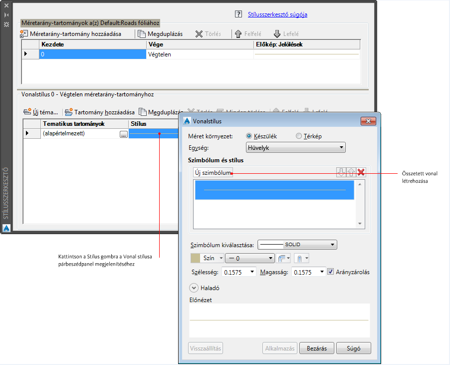 Adjon meg egy másik méretarány-tartományt, és határozzon meg hozzá egy tömör vonalstílust.