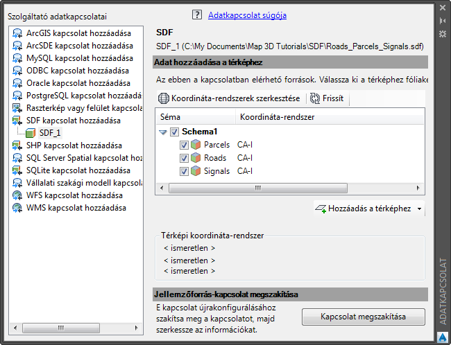 - Az Adatkapcsolat ablakban tegye a következőket: