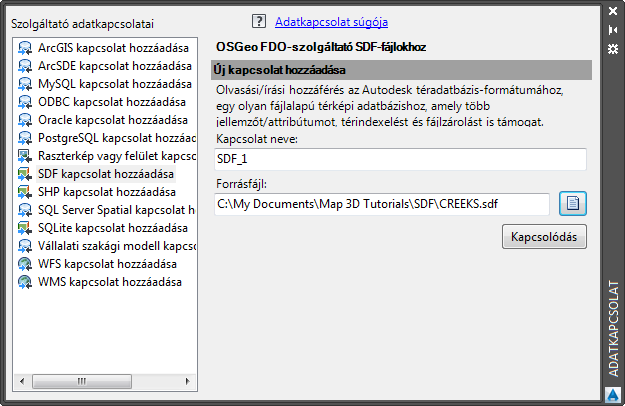- Jelölje ki az 1. Gyakorlat: Objektumosztályok exportálása részben létrehozott SDF-fájl elérési útvonalát.