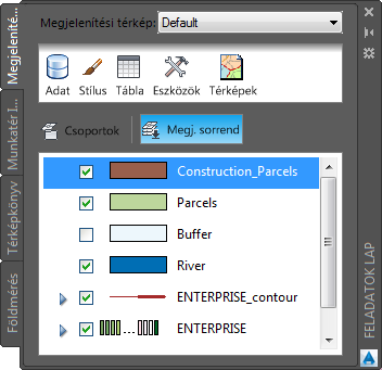 A Megjelenítési sorrend elemre kattintva módosíthatja, hogyan fedjék egymást a fóliák.