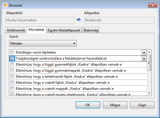 Beállíthatja, hogy egy életciklus automatikusan szinkronizálja a tulajdonságokat és elküldje a fájlokat a feladatszervernek feldolgozásra, amikor bekövetkezik egy bizonyos életciklusállapot-változás.