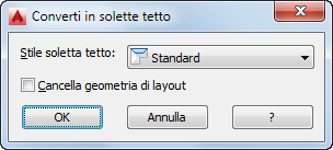 Nel foglio di lavoro Converti in solette tetto vengono visualizzati gli stili di soletta del tetto esistenti nel disegno corrente.